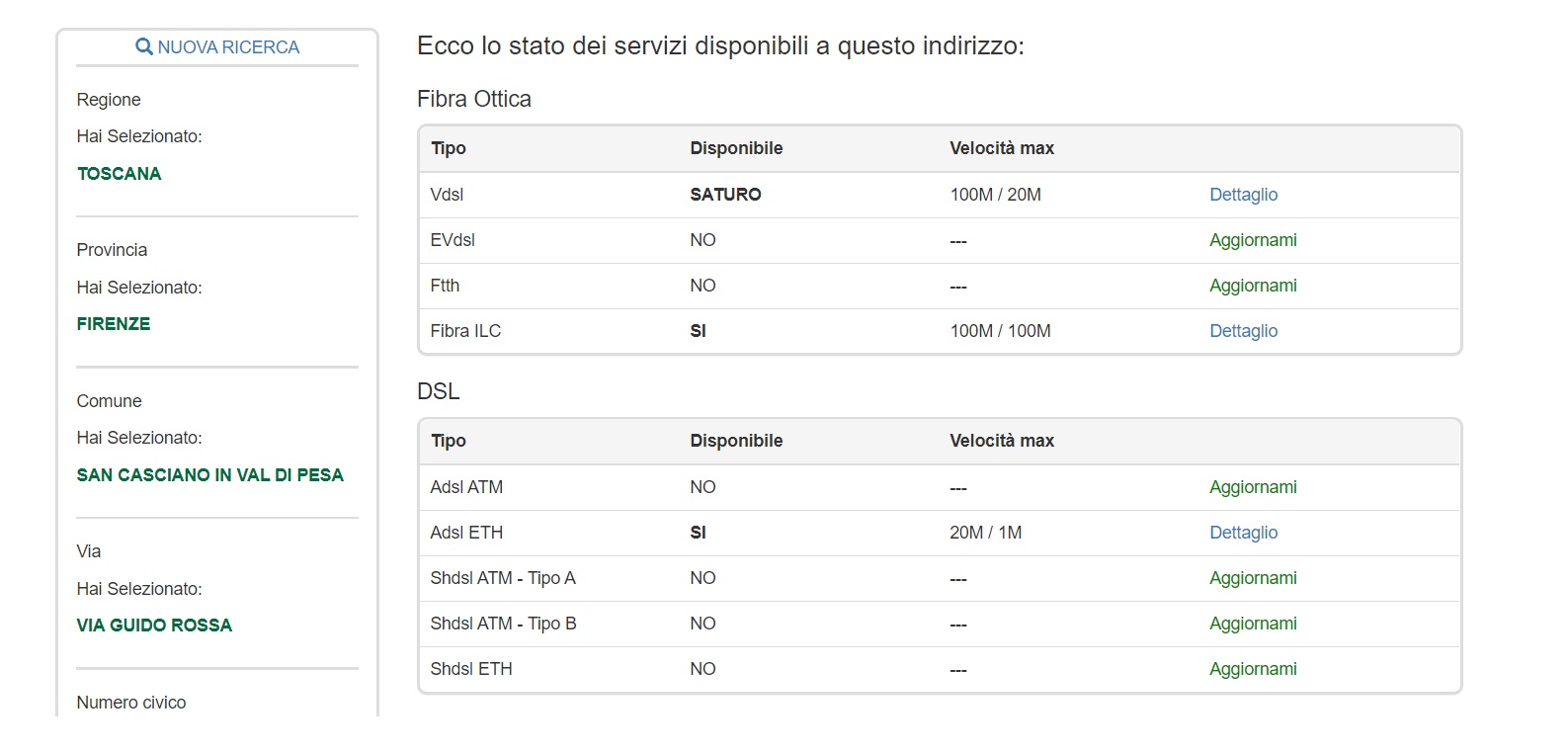 Basti vedere, ad esempio, lo stato dei servizi di connettività in una zona come quella del comune di San Casciano in Val di Pesa, a soli 20km da Firenze:
